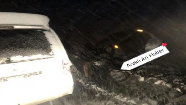 bölgede Bir aracın kar nedeniyle kayması sonucu sürücüler zor anlar yaşarken uzun kuyruklar yaşandı.
