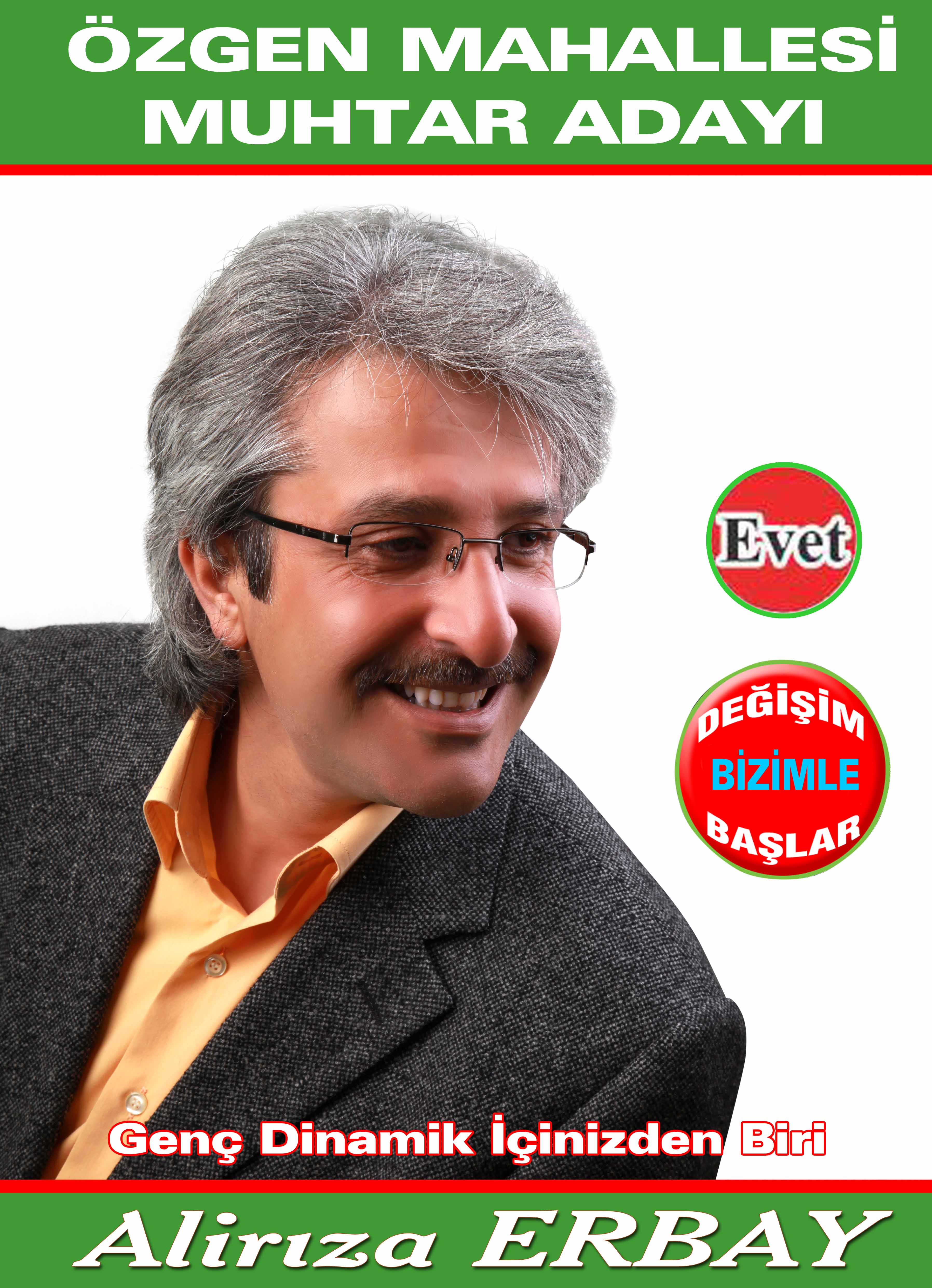sayın büyüklerim analarım bacılarım sevgili gençler gelecek seçimde sizlerin huzuruna özgene muhtar adayı olarak çıkmış bulunmaktayım sizlere hizmet etmek adına girdiğim bu yolda sağduyulu olacağınıza içten inanıyorum sizler inanıyorumki iş yapacak olana oylarınızı vereceksiniz ben mühür muhtarı olmaya deyil hizmetlerimle gelecek nesillere şunları bu özgene alirıza ERBAY yapmıştır dedirtebilme amacındayız